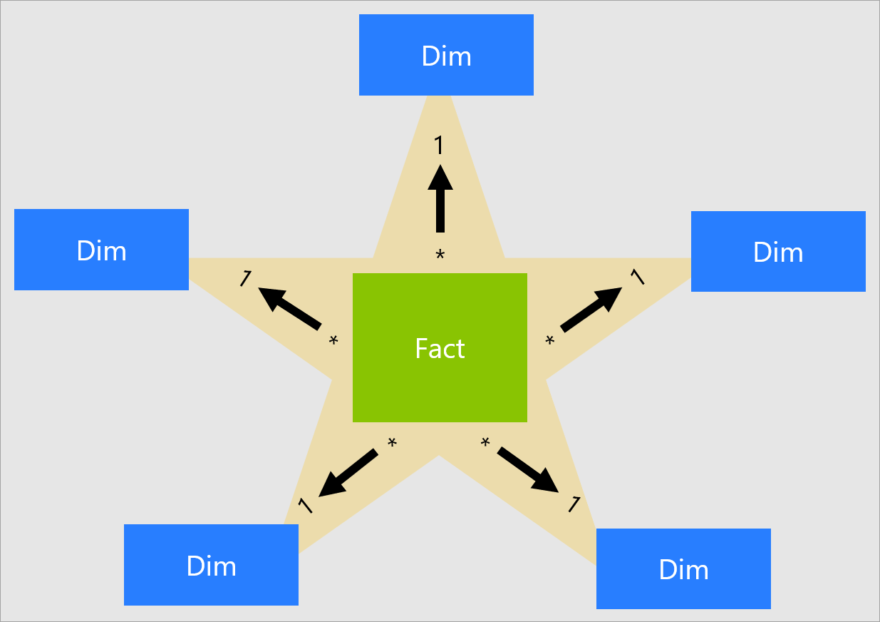 - Fact table normally has orders of magnitude more rows than dimension tables